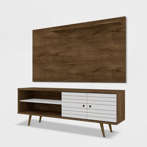 Featuring two open shelves, and one large concealed compartment perfect for stashing dvds, board games, electronics, and media accessories, this entertainment center is the ultimate gathering place and will create a statement in any space. Artful grooves mix well with any decor and splayed. A heathered taupe finish on the. Whether in a living room or game room, it makes a statement and will be a gathering spot for you and your guests. This tv stand is constructed of ash solids and cathedral white oak veneers. Ships free orders over $39. Quality craftsmanship and careful detailing create the ultimate blend of style, functionality, and brilliant design. The liberty collection from manhattan comfort introduces a beautiful tv stand that is a must have addition to your home. Not available for pickup and same day delivery. Featuring a large open compartment, one hidden cubby, and three center shelves to create the ultimate entertainment center perfect for stashing dvds, board games, electronics, and media accessories. Manhattan comfort liberty tv stand 42.52 in white 212bmc6. Rustic brown and white composite tv stand fits tvs up to 46 in. Manhattan comfort liberty tv stand 42.52 in white and 3d 212bmc67.